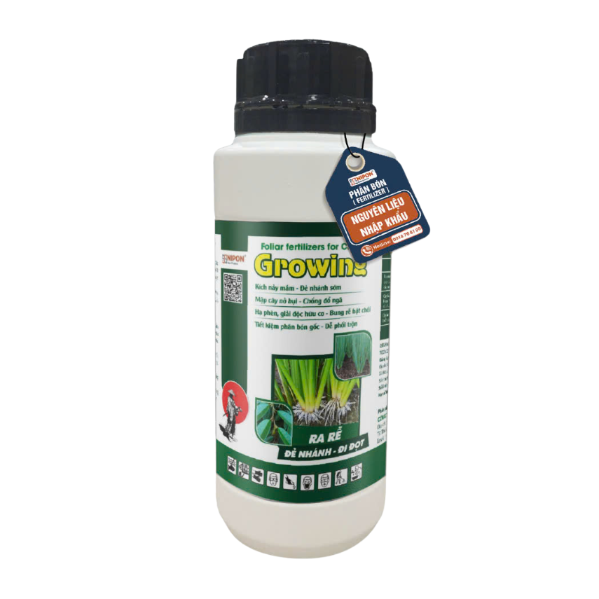 - Thành phần: Nts:5%; P2OShh: 5%; K2Ohh: 5%; Axit humic: 0,7%; NAA: 50 ppm; GA3: 50 ppm; Ca: 0.715%; Mg: 0.603%; B:100 ppm; Zn: 500 ppm; Mn: 300 ppm; pHH2O: 7; Tỷ trọng (dạng lỏng): 1,3; Độ ẩm (dạng rắn): 5%.