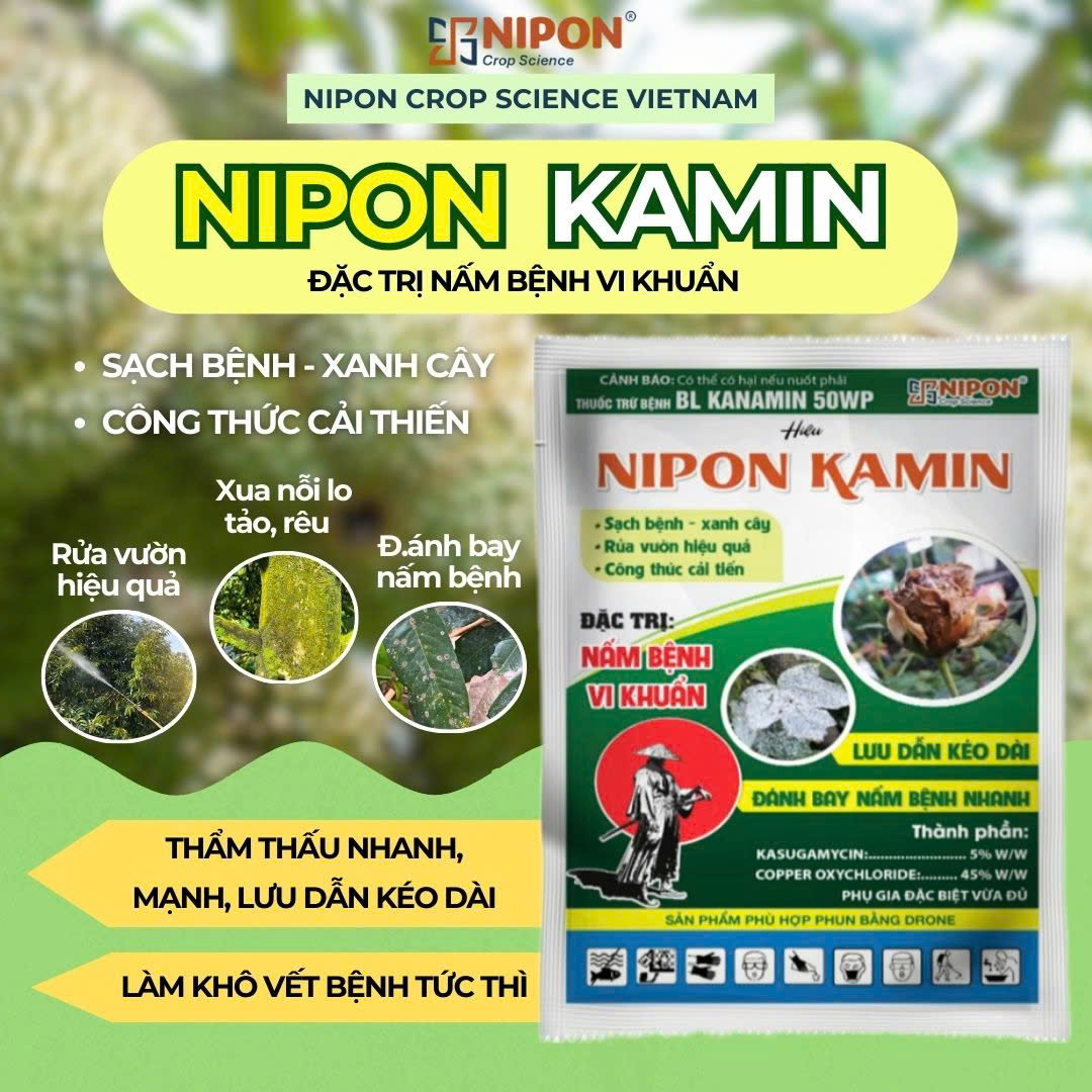 BL KANAMIN 50WP - HIỆU NIPON KAMIN Khối lượng tịnh: 150gr Thành phần: Kasugamycin: 5% w/w Copper oxychloride: 45% w/w Phụ gia đặc biệt vừa đủ Công dụng: Đặc trị nấm bệnh, vi khuẩn, thân cây bị tảo rêu tấn công Rửa vườn hiệu quả Thẩm thấu nhanh, mạnh và lưu dẫn kéo dài Làm khô vết bệnh tức thì, giúp cây phục hồi nhanh chóng sau khi xử lý thuốc. [...]